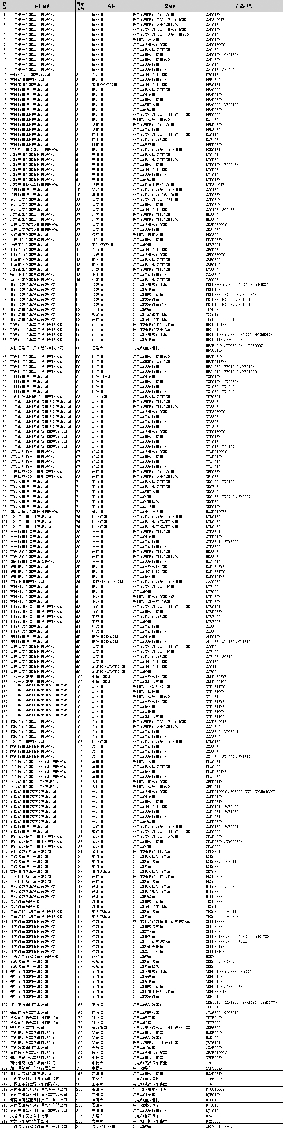2、燃料种类:本批次纯电动产品共计317个(含乘用车20个,客车28个,客车底盘3个,专用车233个,专用车底盘33个);插电式混合动力产品38个(含乘用车17个,专用车20个,专用车底盘1个);燃料电池产品17个(含客车2个,专用车11个,专用车底盘4个)。