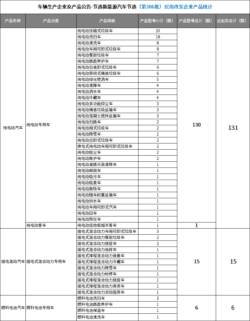 第386批道路机动车辆生产企业及产品-节选新能源汽车范畴的产品——民用改装车生产企业明细